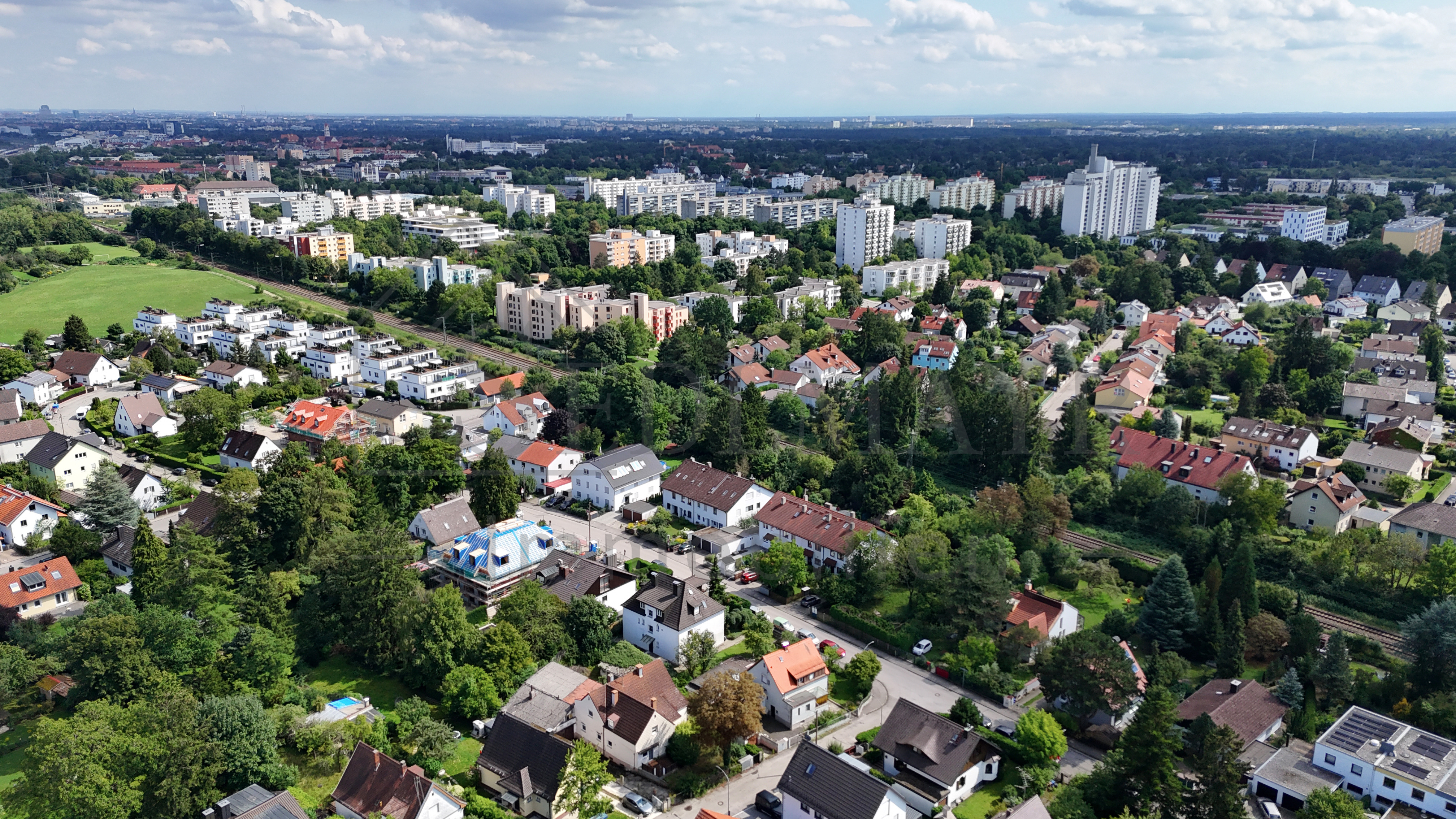 Die ruhige Lage wird ergänzt durch eine hervorragende Infrastruktur: Einkaufsmöglichkeiten, Schulen, Kindergärten sowie öffentliche Verkehrsmittel sind schnell erreichbar. Ein Spielplatz und ein Park in der Nähe machen die Lage besonders attraktiv für Familien. Auch die Anbindung an die Münchner Innenstadt und das Umland ist dank gut ausgebauter Verkehrswege optimal.